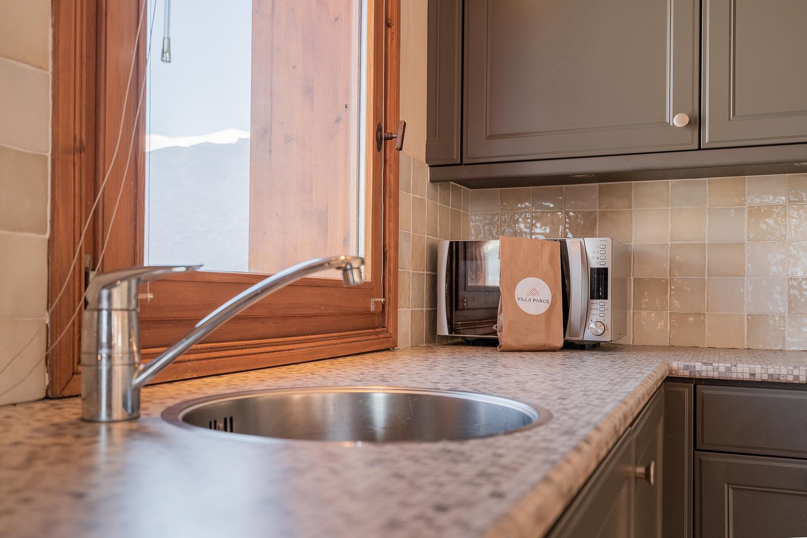 Les luxueux chalets indépendants et meublés pour 12 personnes disposent de cinq chambres (dont l'une est une niche avec lit superposé) et de trois salles de bain, dont une ou deux avec baignoire, l'autre (ou les autres) avec douche. Vous trouverez également trois toilettes dans les chalets. Les chambres sont dotées de lits avec sommiers à ressorts, et une chambre (niche) offre un lit superposé. La luxueuse cuisine avec appareils électroménagers intégrés est entièrement équipée, vous offrant notamment un four, un micro-ondes, un lave-vaisselle, un réfrigérateur avec compartiment congélateur, ainsi qu'une plaque de cuisson à quatre feux. L'inventaire de cuisine est plus que suffisant pour 12 personnes. Le spacieux salon vous propose une cheminée ainsi qu'une vue sur les Alpes. Il va sans dire que les chalets disposent d'un poste de télévision, avec de nombreuses chaînes disponibles par satellite. Les chalets offrent de vastes et belles terrasses et/ou balcons orientés au sud. Vous disposerez en outre d'un casier à skis verrouillable pour ranger vos skis en toute sécurité.