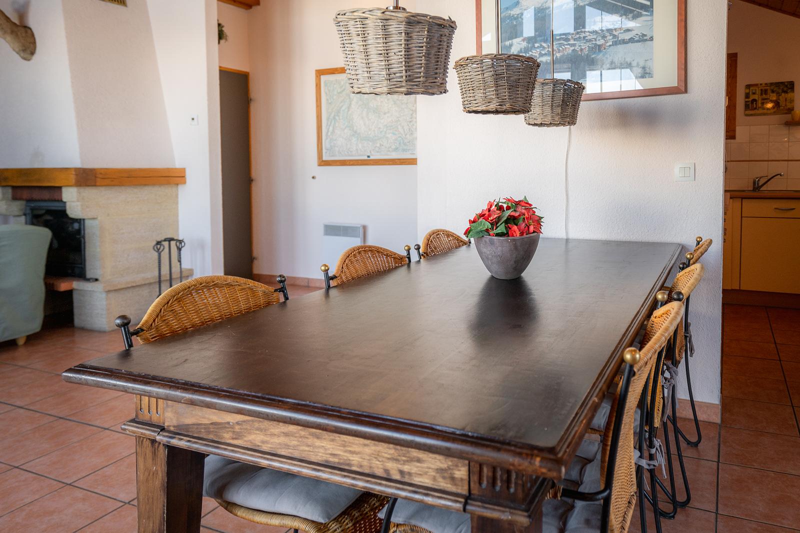 La cuisine est entièrement équipée, comprenant un four et un micro-ondes ou un combiné micro-ondes, un lave-vaisselle, un réfrigérateur-congélateur et une cuisinière électrique. L'inventaire de la cuisine est amplement suffisant pour 8 personnes. Dans le grand salon, vous pourrez profiter de la cheminée et de la vue sur les Alpes. Une télévision est disponible avec des chaînes françaises et néerlandaises. Le chalet dispose d'une terrasse spacieuse orientée vers le sud